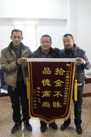 “這位老師真是好人!連個(gè)名也不留下”濟(jì)南某物流公司的武先生在意外收到失而復(fù)得的3萬(wàn)元現(xiàn)金后,連夜敲開(kāi)已關(guān)門(mén)的廣告公司,趕制出一面錦旗,送到山東交運(yùn)集團(tuán),尋找這個(gè)拾金不昧的好心人。